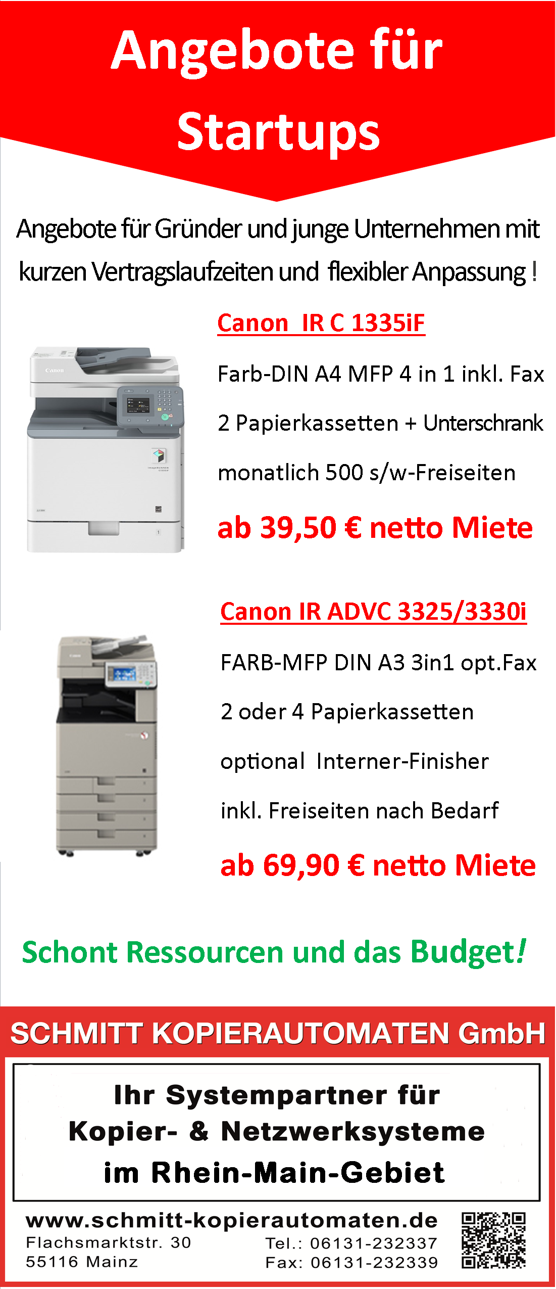 Wir bieten mittlerweile noch einen weiteren Service für Firmen, Behörden und Vereine: Die Kopierer Kurzzeitmiete oder die Tagesmiete für alle gängigen DIN A3 und auch DIN A4 Kopierer sowie für Plotter und Interaktive Whiteboards. Sie können auch Drucker, Faxgeräte bis hin zu Multifunktionssystemen und Interaktiven Whiteboards sehr kurzzeitig für Ihre Veranstaltung, Baustelle oder Messe in Mainz oder im ganzen Rhein-Main-Gebiet mieten.